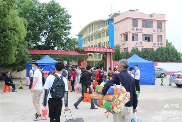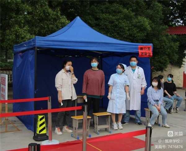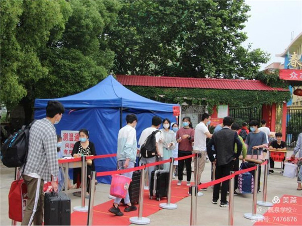 5月11日是高一、高二、初一、初二和小学四、五、六年级开学的日子,我校学子回到了阔别已久的校园。在校门口,同学们排着整齐的队伍,测量体温后可进入校园;在教室里,同学们认真的观看《开学第一课》,学习七步洗手法;校园内,上下楼、就餐、入厕、洗手等各种活动有序排队,按照规划线路,保持1米以上间隔距离。