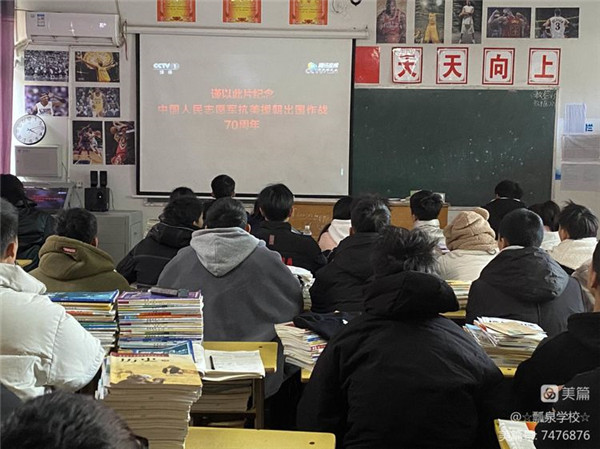 为深入贯彻落实习在纪念中国人民志愿军抗美援朝出国作战 70 周年大会上的重要讲话精神,教育引导广大教师厚植爱国主义情怀,12月25日我校积极组织全体教生观看学习纪录片《为了和平》。