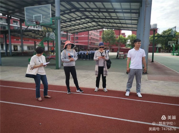 4月21日上午9时许,铅山县教体局体卫艺股刘慕华一行对我校大课间活动展示进行指导。
