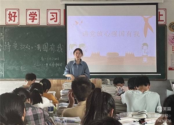 今年是中国共产党成立一百周年,为深入学习贯彻在庆祝中国共产党成立100周年大会上的重要讲话精神,教育引导广大师生听党话、感党恩、跟党走,以不负时代、不负韶华的奋进姿态开启2021年秋季学期新征程,9月22日,我校开展了以“请党放心,强国有我”为主题的全校班会。各班级积极行动、认真落实,取得了良好效果,提升了广大师生的政治意识。