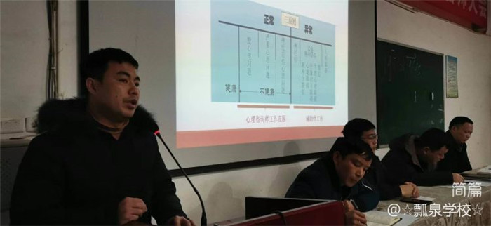 为进一步推进学校心理健康教育,增强学生的生命安全意识,引导他们掌握调节心理的科学方法、快乐学习,2023年2月6日下午,瓢泉学校全体教职工进行了心理健康教育培训会,培训会议由政教副校长苏俊主持。