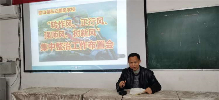 为全面落实铅山县教育系统警示教育大会暨集中整治工作部署会精神,推动中小学全面从严治党向纵深发展开展“转作风、正行风、强师风、树新风”集中整治,我校于3月16日开展“转作风、正行风、强师风、树新风”集体学习研讨会。会议由郑贵龙校长主持,全体教师参会。