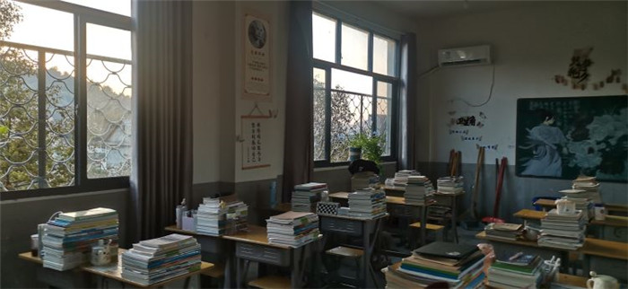 8、教室内桌椅及书本等物品摆放整齐,桌椅上无乱刻、乱贴现象,教室地面、墙壁、门窗、讲台、电风扇、日光灯等,室外走廊、墙面干净无灰尘、无污迹,无卫生死角。