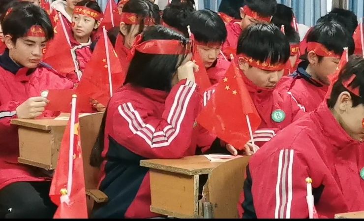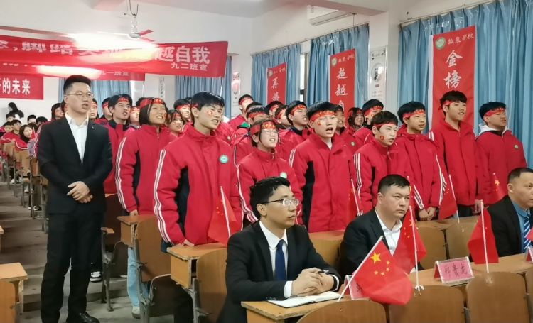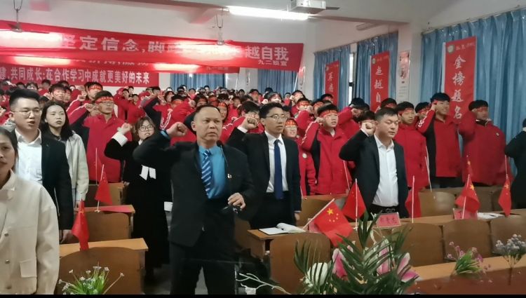 紧接着,九(1)班、九(2)班宣誓,八、九年级齐宣誓和全体师生宣誓。他们整齐站立,紧握右拳,高声宣誓,用响彻云霄的铮铮誓言表达内心的渴望,用坚定的神情展现决战高考的勇气和力量。誓言震耳欲聋,百天信心满怀。
