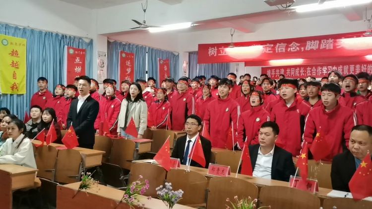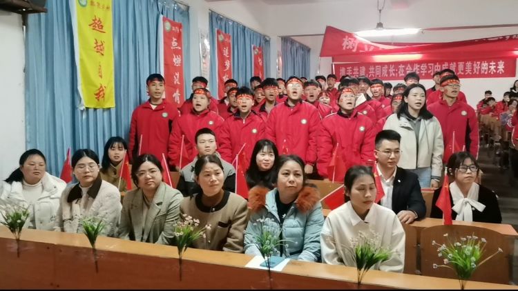 团结就是力量,凝聚力是共同前进的动力源泉!全体师生共同见证了这一激动人心的时刻,同学们斗志昂扬、精神振奋,随即一同唱响歌曲《团结就是力量》用激昂的音乐展现出梦想的力量,用歌喉唱出傲视群雄的气势。