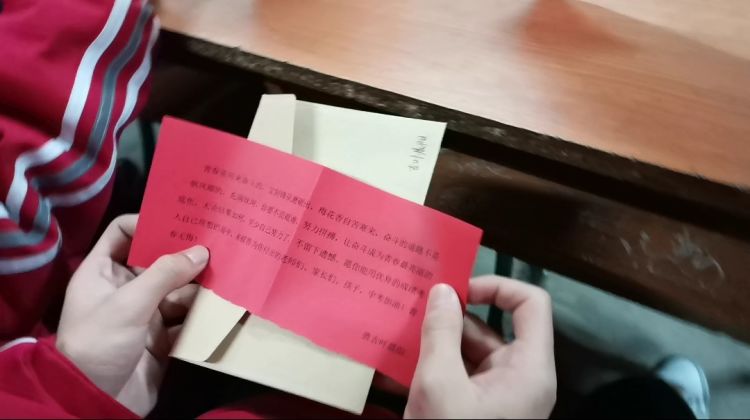 在中考百日誓师的这个特殊时刻,家长们也借此机会用一封信向孩子表达全家人的鼓励和支持。班主任老师将信件交与同学们,收获的不止是家人的支持,更是精神的鼓舞。