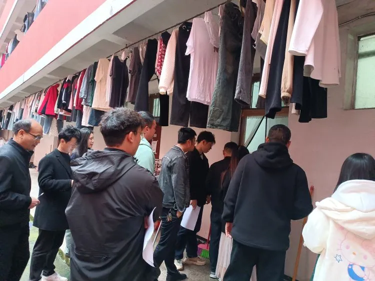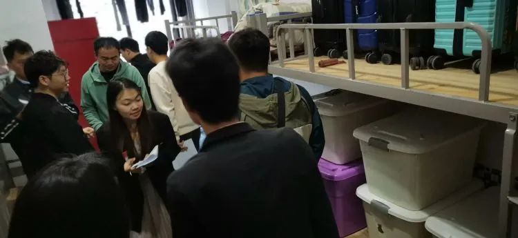 评委们在评审过程中不放过任何一个细节。每一面墙壁、每一个床位,乃至于床底的边边角角,评委们都细致地检查打分。