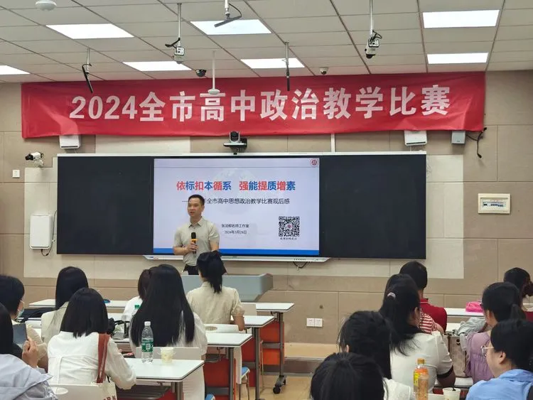 为深入学习贯彻党的二十大精神,落实立德树人根本任务,不断促进我市高中思想政治课堂教学改革,提高教师队伍的综合素质、专业水平和育人能力,2024 年 5 月 26 日-28 日,在婺源县天佑中学举办了上饶市高中思想政治教学比赛。我校朱柳燕老师在经过校内磨课、比赛,以及铅山县高中思政优质课竞赛的激烈角逐后,最终代表铅山县参加此次比赛。