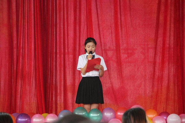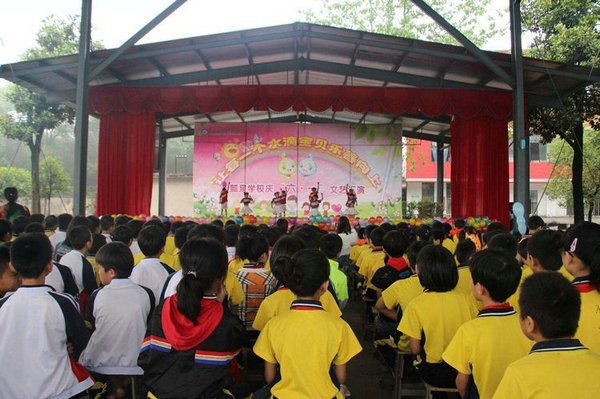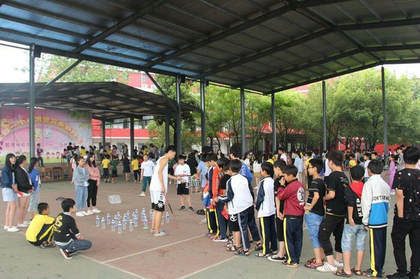 节目表演开始了,和着音乐,水滴宝贝们时而翩翩起舞,时而高歌一曲,时而激情朗诵,时而……场上不时响起雷鸣般的掌场。更为有意思的是绳王争霸擂台赛了,每班的两名选手,同台现场竞技,最终余唐志、杨毅铭等六位同学获得了“绳王”称号。