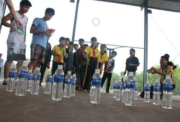 中午同学们怀着快乐进入午休的梦乡。下午,同学们又如同快乐的小鸟一般,飞奔至学校操场上,是什么让他们如此兴奋呢?原来今天他们都要挑战自我,前来闯关呢!瞎子敲锣、百发百中、夹取弹珠、投圈圈、你投我接、捧乒乓球……这些难关可都不在水滴宝贝们的话下,看着那集着奖券上通过的盖章,心理甭提多开心了!