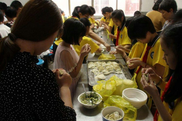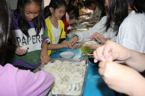 游园活动刚一结束,孩子们又冲向了食堂。顿时,食堂里又响起了欢呼声,原来同学们开始了包饺子活动。端起那热腾腾的水饺,吃上了自己亲手包裹的水饺,味道可香了……