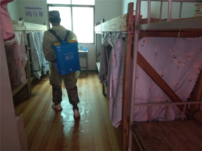 蓝天救援队来我校喷洒消毒液(4月1日)