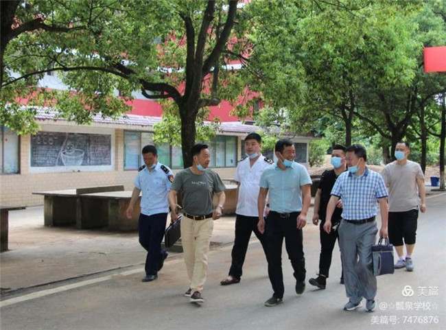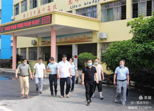 本次检查由公安、卫健、市管、教体和疾控部门成立联合督查组分组进行督查。组长周武林(卫健委)带领成员戴成(公安局)、刘志明(市管局)、吴斌(市管局)、曾科平(教体局联络员)对我校的开学工作进行了全面督查。